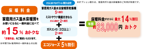 ガス温水床暖房なら「床暖料金」が適用され、ガス代がとってもおトクに!