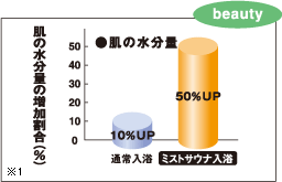 ※1 入浴前の肌(ほほ)の水分量を基準値とした時の入浴後10分経過時の水分増加割合を表す。